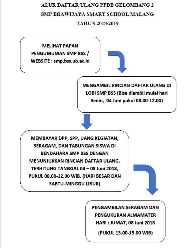 Adapun alur daftar ulang PPDB gelombang 2 Tahun Pelajaran 2018/2019 adalah sebagai berikut: