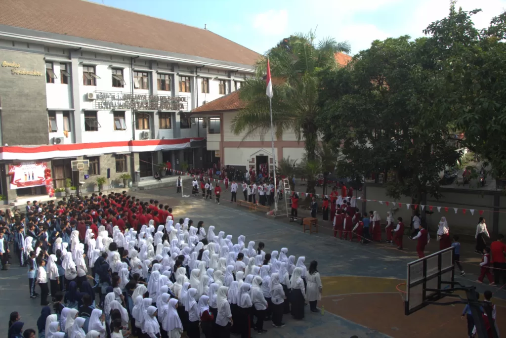 Malang, (22/08). BOSS JIE AGUSTUSAN merupakan salah satu acara yang diselenggarakan oleh OSIS SMP BSS dalam rangka ikut memeriahkan peringatan HUT Ke-78 RI. Dalam acara ini terdapat beberapa lomba yang memang sudah menjadi tradisi lomba setiap Agustus-an seperti balap karung dan bakiak. Ada pula inovasi lomba baru yang berasal dari ide kreatif para panitia, yaitu block run (pemain memindahkan balok sampai ke garis finish sambil jongkok di atas balok), balumba estafet (permainan yang terdiri atas tiga babak dan dilakukan secara estafet. Dari menggigit kelereng di atas sendok sambil menggiring bola basket, makan kerupuk dengan mata tertutup sampai dengan tiga orang yang berlari dalam satu sarung sampai finish). Terdapat juga lomba kesenian, yaitu menggambar poster digital yang dijuri oleh Bapak Oscar Ery Permana, S.Pd. dan Ibu Yuli Puji Astuti, S.Pd. Selain lomba poster, adapun lomba menghias mading kelas dengan juri Bapak Mohamad Helmi Nur Fikri, S.Pd. dan Ibu Nurul Laili Rohmatin, S.Pd.